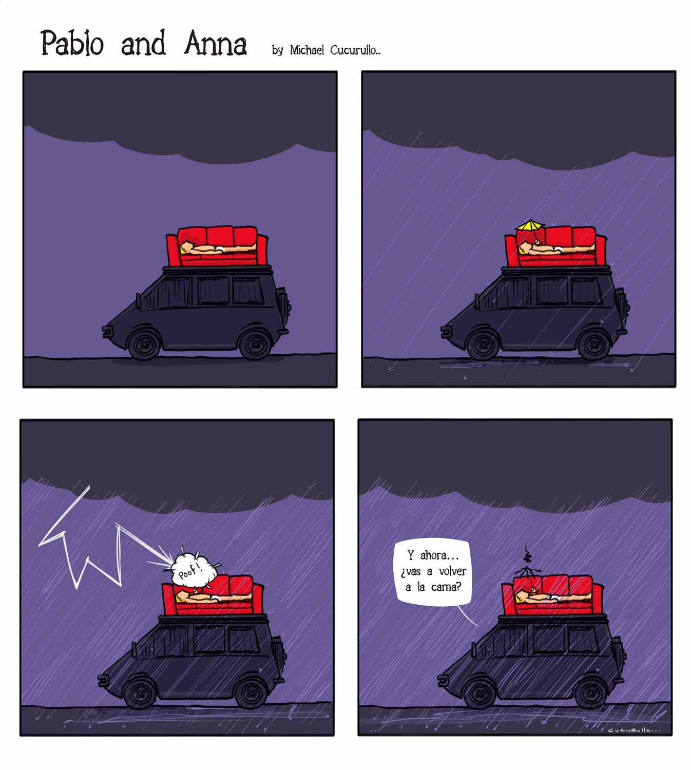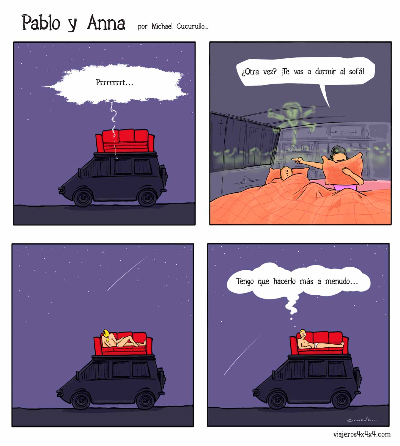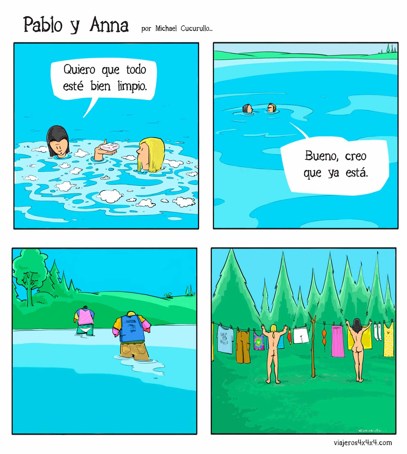 Pablo y Anna, las aventuras y desventuras de una pareja que vive en una casa con ruedas llamada La Cucaracha, tras más de 15 años viajando alrededor de un planeta surrealista llamado Tierra… Sigue leyendo historietas en Pablo y Anna.